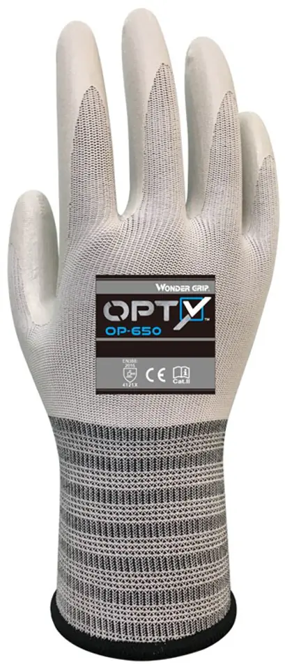 Wonder Grip OP-650 to ultralekka rękawica nitrylowa powlekana, zaprojektowana specjalnie do zastosowań montażowych i konserwacyjnych. Powłoka nitrylowa OP-650 zapewnia całkowitą ochronę przed płynami, takimi jak oleje przemysłowe, zapewniając jednocześnie maksymalną zręczność.