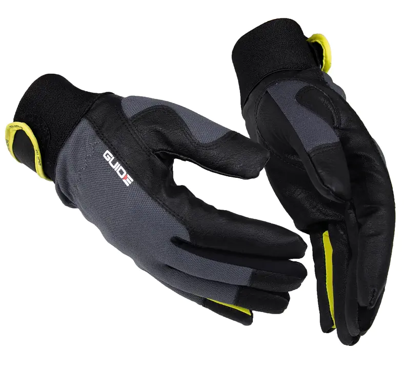Wodoszczelne rękawice zimowe ze skóry syntetycznej z elastyczną tkaniną na górnej części dłoni i wzmocnieniami opuszków palców. Mankiet reguluje się łatwo zapięciem na rzepy.