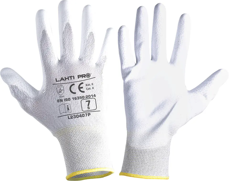 RĘKAWICE PU ANTYSTAT. BIAŁE L230409P, KARTA, "9", CE, LAHTI