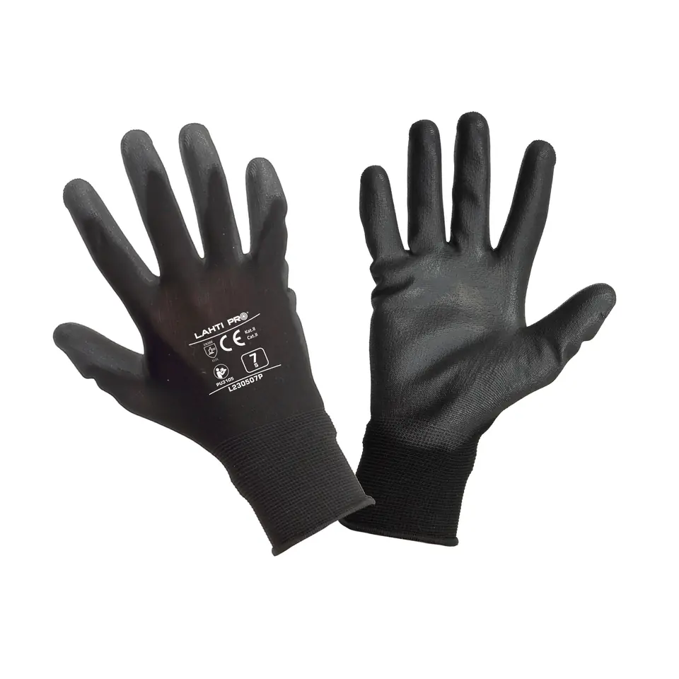 Rękawice pu czarne l230507p, 12 par, "7", ce, lahti