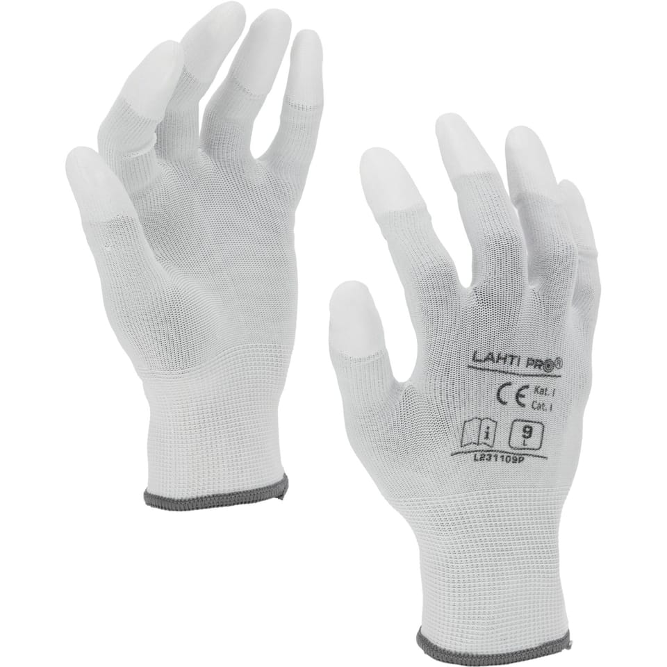 - Powlekane na końcówkach palców poliuretanem zapewniającym wysoką manualność oraz doskonałe czucie trzymanego przedmiotu