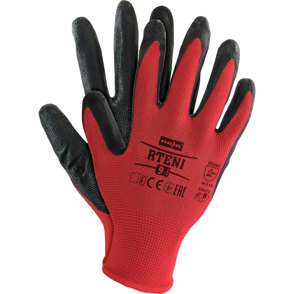 Rękawice REIS RTENI CB poliestrowe powlekane nitrylem czerwono-czarne roz.8/M