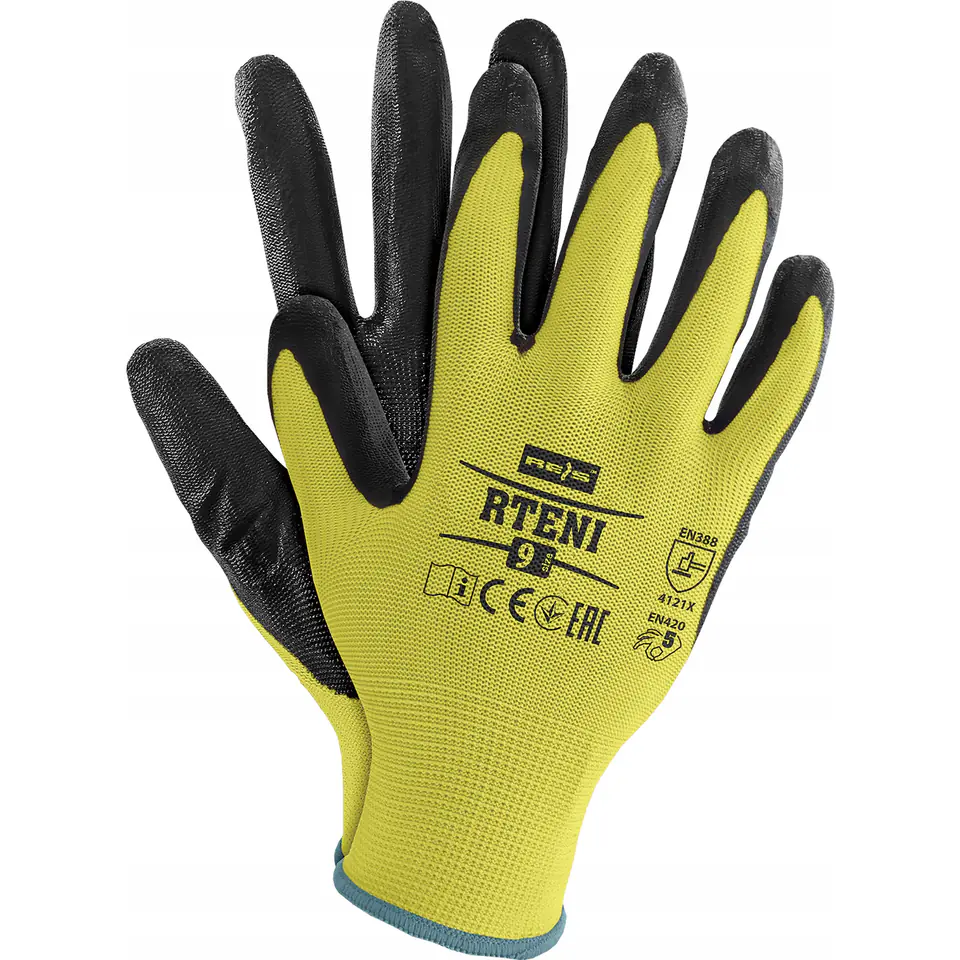 Rękawice REIS RTENI YB poliestrowe powlekane nitrylem żółto-czarne roz.7/S