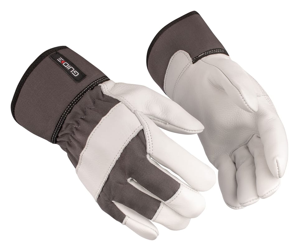 Grube, podszyte do połowy rękawice robocze z miękkiej, odpornej na zużycie licowej skóry bydlęcej przeznaczone do cięższych prac. Rękawice mają mankiety zabezpieczające, podszycie bawełniane do połowy na wewnętrznej stronie dłoni i wzmocnienia na palcach i knykciach.