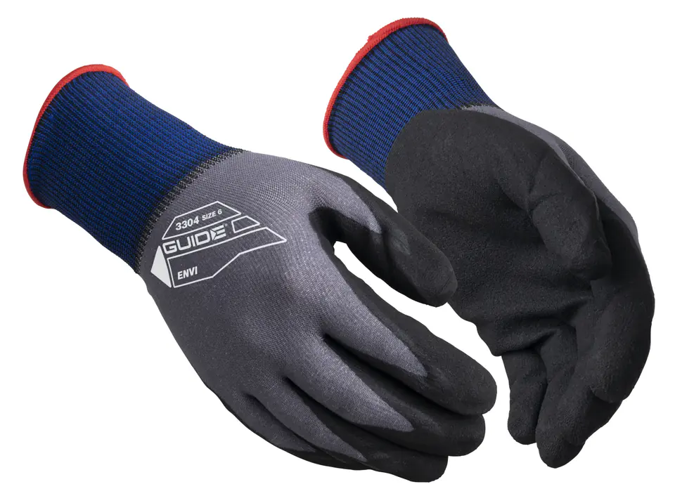 Cienka, elastyczna rękawica robocza — zalicza się do ENVI, czyli naszej serii produktów środowiskowo zrównoważonych. Produkcja rękawic ENVI pochłania mniej energii elektrycznej i/lub generuje mniejsze zużycie wody. Ponadto rękawice z tej serii nie zawierają DMF, butadienu ani silikonu. Model 3304 ma w składzie glikozowo-glicerolowy krochmal 15 gg oraz niewielką ilość nylonu, co czyni te rękawicę wyborem bardziej zrównoważonym i zapewnia doskonałe odprowadzanie wilgoci. Zatwierdzony 1. poziom ochrony przed ciepłem kontaktowym. Certyfikat Oeko-Tex. Obszar dłoni zanurzeniowo powleczony wysokiej jakości nitrylem. Możliwość obsługi ekranu dotykowego.