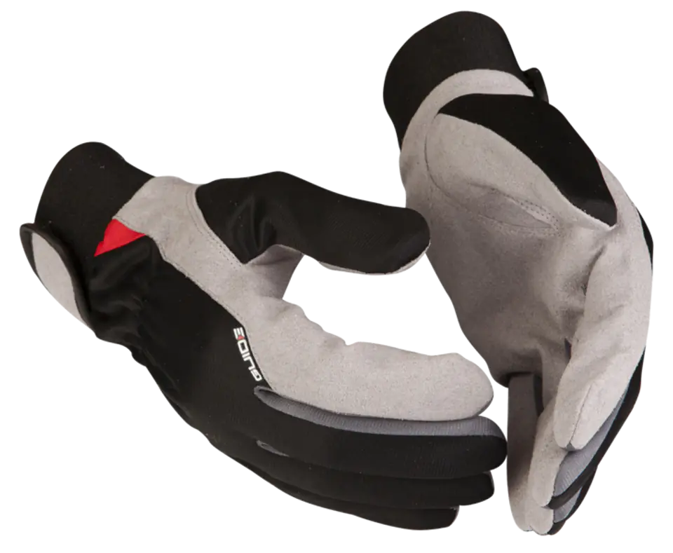 Miękkie i przewiewne rękawice robocze z wewnętrzną stroną dłoni ze skóry syntetycznej, a górną częścią dłoni z poliestru. Szerokość mankietu reguluje się łatwo zapięciem na rzepy.