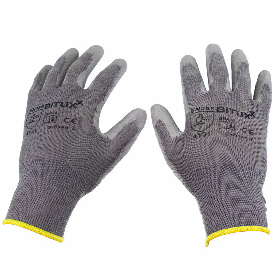 Rękawice zostały wykonane z poliestru z powłoką PU, która zapewnia dobry chwyt i zwiększa odporność na uszkodzenia. Praca w rękawiczkach pomaga zabezpieczyć skórę dłoni przed otarciami, uszkodzeniami i bezpośrednim kontaktem z różnymi materiałami. Rękawiczki sprawdzą się podczas prac montażowych, warsztatowych a nawet ogrodowych.