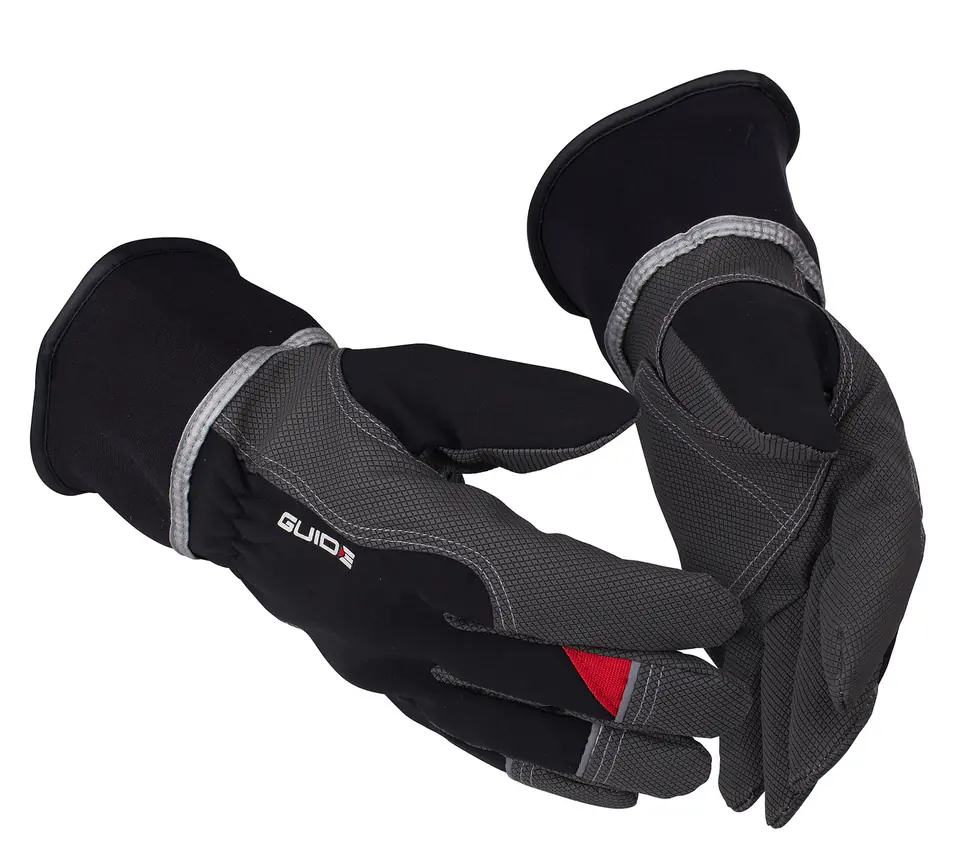 Górna część dłoni z softshellu, dzięki czemu nie przepuszczają wiatru i płynów.