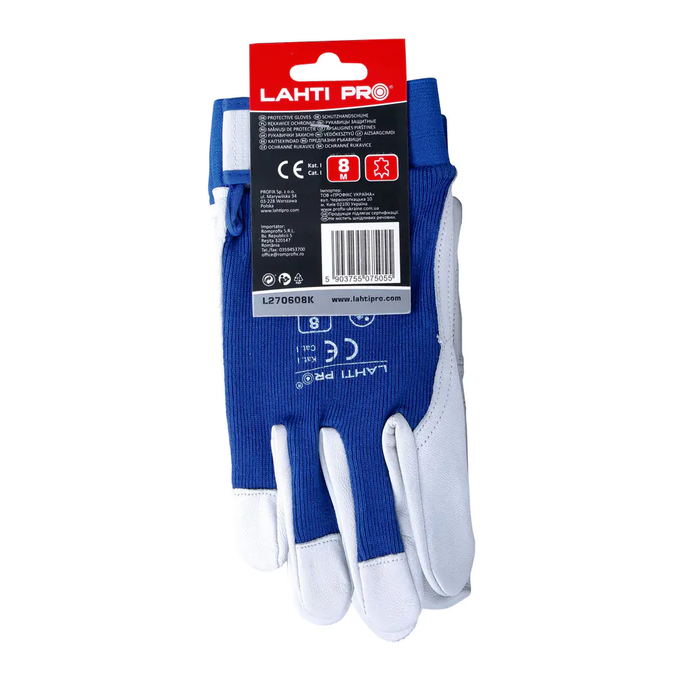 RĘKAWICE ZE SKÓRY KOZ. GRANAT. L270610P, KARTA,"10",CE,LAHTI