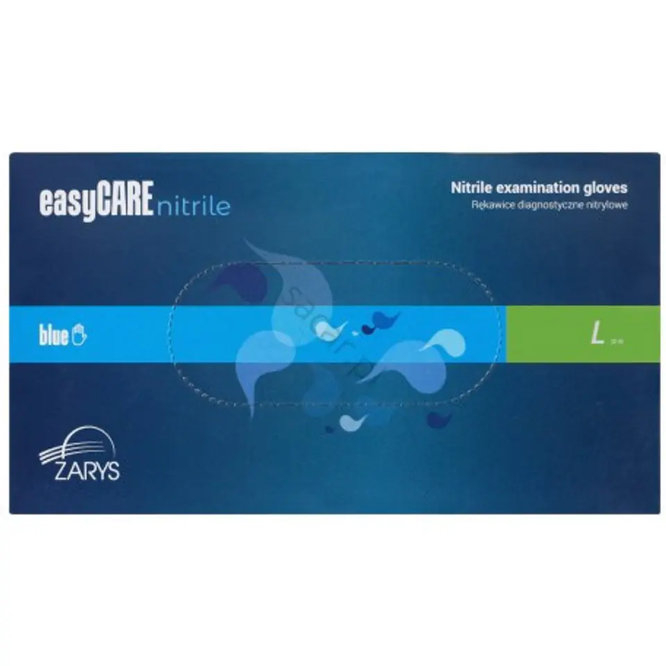 Rękawiczki jednorazowe nitrylowe diagnostyczne i ochronne Easycare nitrile Blue rozmiar L niebieskie 100 szt Rękawice diagnostyczne nitrylowe bezpudrowe easyCARE wykonane z syntetycznego kauczuku, który jest wolny od lateksu i zawartych w nim protein. Wpływa to korzystnie na komfort pracy osób wrażliwych na białka lateksowe oraz na sam lateks. Delikatność materiału oraz jego odpowiednia grubość zapewniają doskonałe czucie, dopasowanie, komfort i elastyczność dla użytkowników i jednocześnie zmniejsza zmęczenie dłoni. Rękawice nitrylowe posiadają wysoką odporność na ścieranie i przebicie. Nie posiadają środka pudrującego, co pozwala wyeliminować podrażnienia skóry. Świetnie sprawdzą się w gabinetach stomatologicznych, weterynaryjnych, laboratoriach, salonach kosmetycznych i fryzjerskich czy do użytku domowego. Dopuszczone do kontaktu z żywnością. Bezpudrowe, pozwalające wyeliminować podrażnienia skóry wywoływane przez puder Tekstura na całej powierzchni dłoni oraz palców zapewniającą lepszą chwytność i przyczepność Rolowany mankiet ułatwiający zakładanie Uniwersalny kształt pasujący na prawą i lewą dłoń Opakowanie: 100 szt.