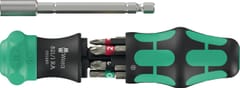 Rękojeść Kraftform z uchwytem do bitów 1/4". Drobnozębna grzechotka zintegrowana z rękojeścią zapewnia szybką pracę. Intuicyjna zmiana kierunku pracy: obrót pierścienia przełączającego w prawo powoduje zmianę kierunku pracy w prawo, obrót pierścienia przełączającego w lewo powoduje zmianę kierunku pracy w lewo. Mechanizm zapadkowy można zablokować w pozycji 0 dla zapewnienia precyzyjnej pracy. Zestaw zawiera 6 bitów 6 BiTorsion charakteryzujących się długą żywotnością, wytrzymałych, do uniwersalnego zastosowania, przechowywanych w magazynku na bity wbudowanym w rękojeści. Silny magnes stały w uchwycie do bitów 1/4" zapewnia ich niezawodne mocowanie. 2-komponentowa rękojeść Kraftform z kombinacją strefy twardej i miękkiej umożliwia pewny chwyt i precyzyjną pracę.