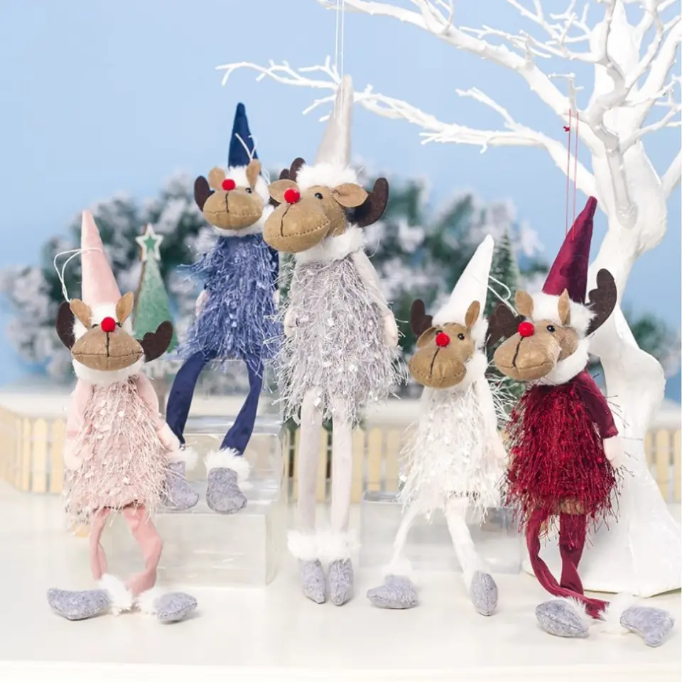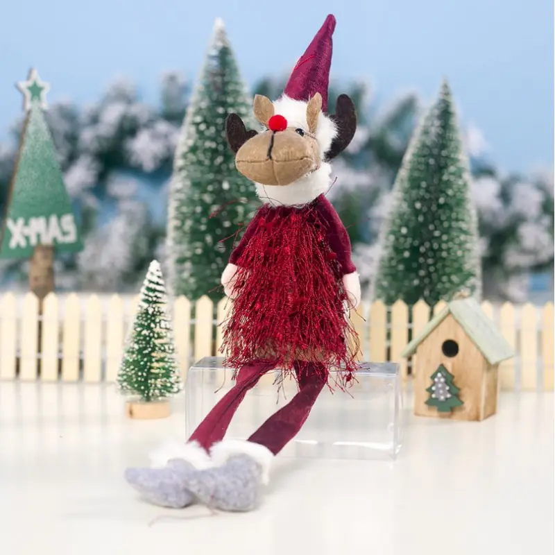 Siedzący renifer z wiszącymi nóżkamiWypełniony pluszemDla stabilizacji pozycji stojącej w tułowiu posiadają piasek - co dodatkowo je obciążaFigurki ze sznurkiem - można je powiesićWaga: 82 gWymiary:Wysokość maksymalna : 37 cm Szerokość: 9 cm