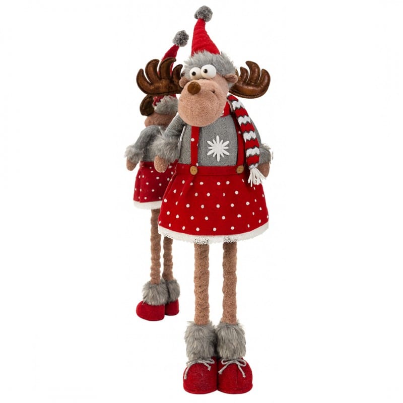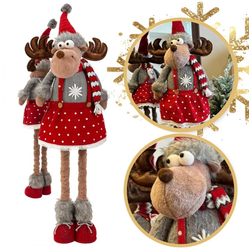 Renifer świąteczny na Boże Narodzenie, wyciągane nogi, z pluszu, 60-90 cm - KSN202