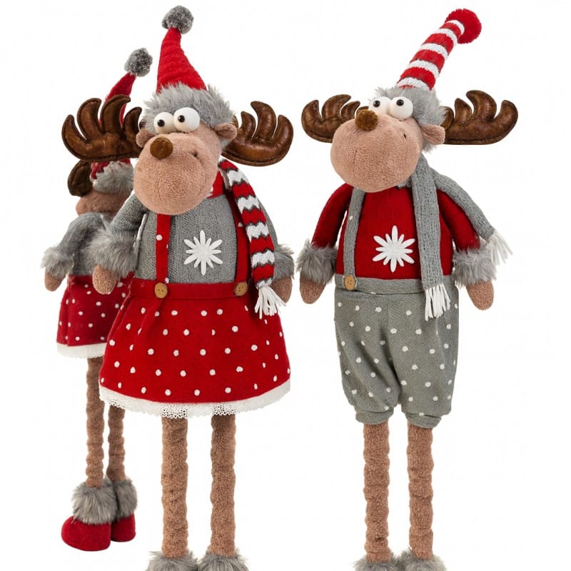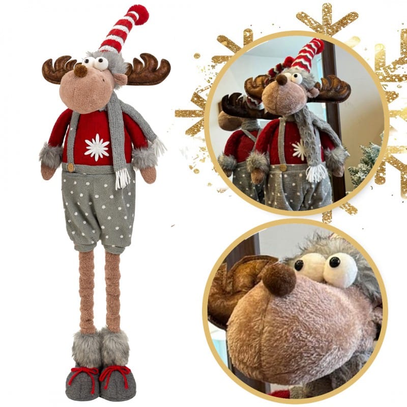 Renifer świąteczny na Boże Narodzenie, wyciągane nogi, z pluszu, 60-90 cm - KSN203