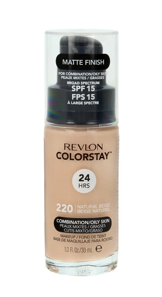 Kultowy już produkt doceniony i uwielbiany przez miliony kobiet na świecie. Podkład ColorStay jest wyjątkowo trwałym kosmetykiem, który utrzymuje się na twarzy nawet do 24 godzin. Fluid zapewnia perfekcyjne krycie, kamufluje nawet najbardziej problematyczne niedoskonałości cery nie tworząc niepożądanego "efektu maski". Nie brudzi przy tym ubrań, nie ściera się i nie zmienia swojego koloru nawet po intensywnym pudrowaniu. Dzięki opatentowanej technologii SoftFlex zapewnia komfort długotrwałego i naturalnie wyglądającego makijażu przez cały dzień i bez zbędnych poprawek. Podkład ColorStay przeznaczony dla cery tłustej i mieszanej perfekcyjnie nadaje matowe wykończenie makijażu, utrzymuje cerę zmatowioną przez wiele godzin. Unikatowa formuła zawiera ekstrakty roślinne oraz proteiny jedwabiu, które uwalniając się w ciągu dnia dając poczucie lekkości i wyjątkowego komfortu. Podkład dodatkowo zawiera witaminę A i E, które wygładzają skórę oraz chronią ją przed szkodliwym wpływem czynników zewnętrznych. Filtr SPF 6/15 chroni przed promieniowaniem UV, jakże istotnym w przypadku, gdy nasze kremy nie zawierają go. Podkład nie zatyka porów, jest beztłuszczowy.