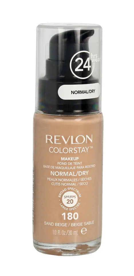 Revlon Colorstay normal/dry to lekki płynnny podkład dedykowany dla cery normalnej i suchej.Doskonale kryje ,tuszuje wszelkie niedoskonałości i jednocześnie idealnie dopasowuje się do karnacji i ujednolica koloryt.Nie zatyka porów i nie tworzy nieestetycznego efektu maski.Utrzymuje się do 24 godzin.Podkład ma także działanie nawilżające i pielęgnujące.Zawiera ekstrakty roślinne i proteiny oraz Witaminy A i E które zabezpieczają przed destrukcyjnym wpływem czynników zewnętrznych, a także spowalniają proces starzenia.Ma filtr ochronny SPF 20.