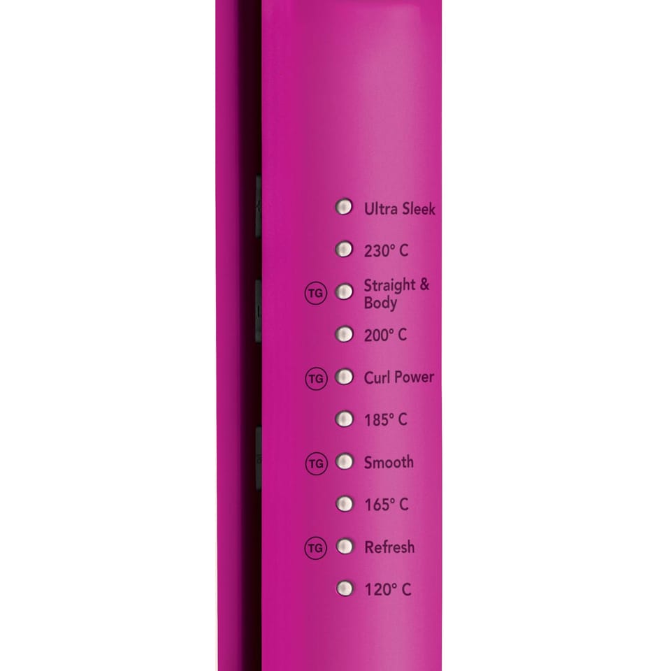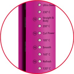 5-stopniowa regulacja temperatury pozwala dopasować stylizację do struktury włosów i oczekiwanego efektu. Dodatkowo, technologia TruGuard™ chroni włosy koloryzowane (do temperatury 200°C).