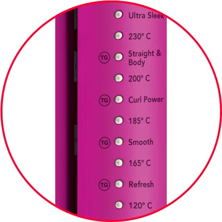 Pozwala dopasować temp. do struktury włosów, czy oczekiwanych efektów. Dodatkowo, technologia TruGuard™ chroni włosy koloryzowane (do temperatury 200°C).