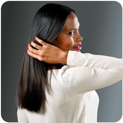 Oddziel pasmo włosów o szerokości 5 cm. Zaczynając od nasady, delikatnie zaciśnij włosy między płytkami. Powoli pociągaj narzędzie w dół, aż do końcówek.