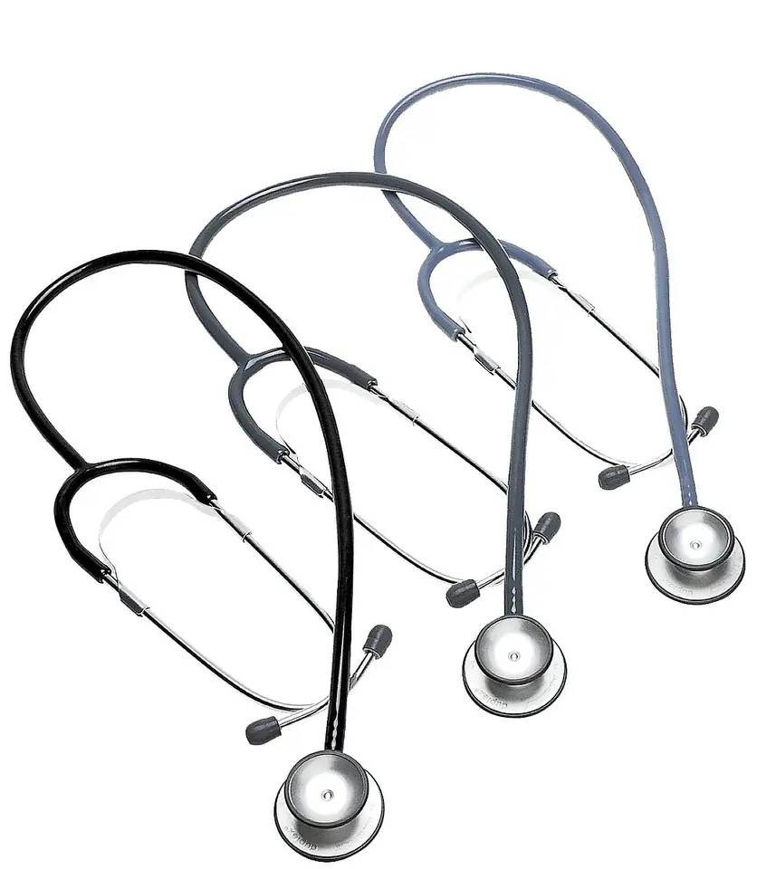 Stetoskopy firmy Riester Technologia CNC dwustronna głowica platerowana i chromowana lira ze sprężyną umieszczona na zewnątrz, wymienne oliwki wytrzymały dren, wykonany z PVC bezlateksowe. Charakterystyka: długość całkowita: 77 cm, lejek Ø 36 mm, specjalna membrana Ø 48 mm w komplecie dostarczane są: para dodatkowych oliwek i zapasowa membrana. Uwaga: Stetoskopy Duplex® są wyposazone w dwustronne głowice w 2 typach chromowany mosiądz lub wersja aluminiowa. Głowica aluminiowa lira ze sprężyną zewnętrzną: 4001-01 czarny, 4001-02 ciemnoszary, 4031-03 niebieski