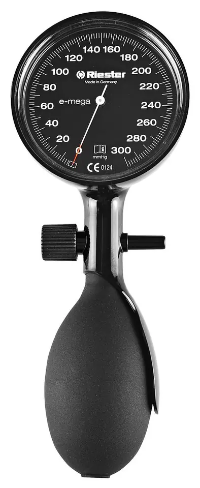 Ciśnieniomierz lekarski, zegarowy E-mega W całości wykonany z poliwęglanu. Mankiety dołączane do tego modelu charakteryzuje budowa jednoczęściowa oraz to, że są całkowicie bezlateksowe. Dostępny jest w kolorze białym. Ciśnieniomierz e-mega posiada świadectwo klinicznej walidacji BHS. Główne cechy ciśnieniomierza dla lekarza – E-mega: Korpus z poliwęglanu, czytelny manometr, duża skala o średnicy 63 mm (2,5 cala), wysokopolerowany manometr, łatwy do dezynfekcji, ergonomiczny kształt gruszki umożliwia szybkie pompowanie, zawór odpowietrzający z precyzyjną regulacją, kontrastowa wskazówka na skali, mankiety jednowężykowe, bezlateksowe, nadające się do prania, mikrofiltr zabezpiecza układ pomiarowy, obciążenie ciśnieniowe do 600 mm Hg, maksymalny błąd pomiarowy w zakresie +/- 3 mm Hg, posiada świadectwo klinicznej walidacji BHS, 2 lata gwarancji.