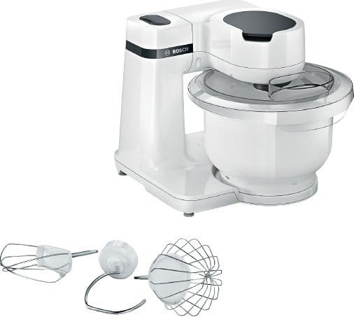 | Wyposażenie: | Końcówka do mieszania, Końcówka do ubijania, Hak do zagniatania, Pokrywa do misy, Dokumentacja |