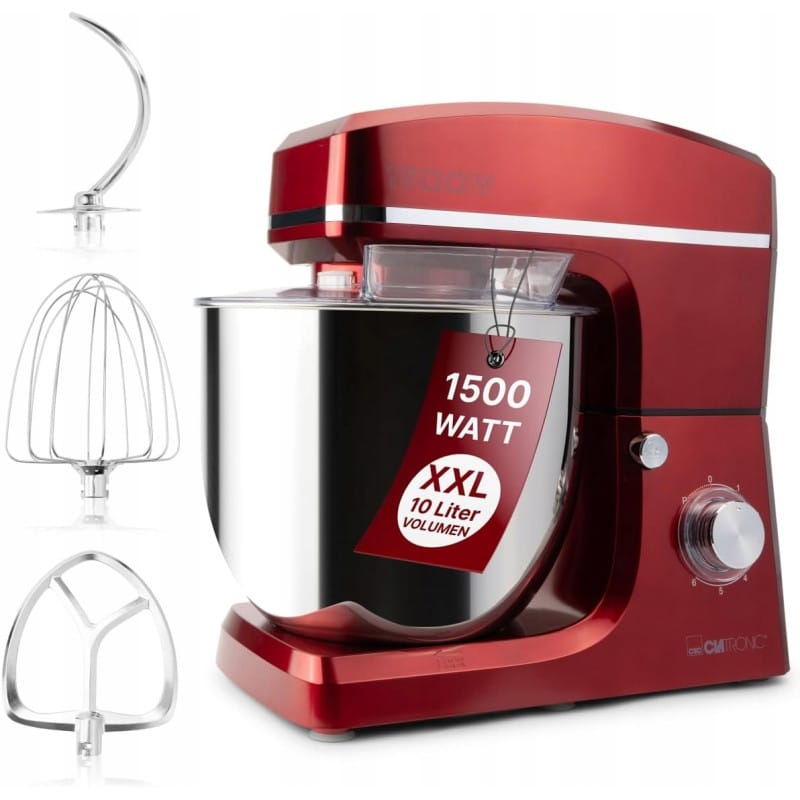 Robot kuchenny planetarny CLATRONIC KM 3765 1500WMoc - Mocny silnik 1500 W do łatwego wyrabiania i mieszania - Z łatwością uzyskaj pożądaną konsystencję ciasta. Mocny silnik dużego robota kuchennego zapewnia wydajne mieszanie i z łatwością ugniata nawet ciężkie ciastaAkcesoria - Odlewany aluminiowy hak mieszający w robocie kuchennym z łatwością opanuje luźne ciasta, takie jak kruche ciasto, kruszonka lub ciasto biszkoptowe. Z drugiej strony aluminiowy haczyk do ciasta odlewany ciśnieniowo jest idealny do ciężkich ciast, takich jak drożdże, chleb lub ciasto makaronowe. A za pomocą trzepaczki ze stali nierdzewnej możesz łatwo zrobić ubite białka jaj, śmietanę, bezę i wiele więcejPojemność - Mieszarka XXL posiada obszerną 10-litrową miskę ze stali nierdzewnej do przygotowania ciasta do 6 - 6,5 kg ciasta. Przygotuj ciasto w większych ilościach bez utraty jakości i precyzji. Miska ze stali nierdzewnej o pojemności 10,0 litra zapewnia wystarczająco dużo miejsca na wydajne przygotowanie ciastaNiezawodny - Duża maszyna do ugniatania ma wytrzymałe metalowe przekładnie, które poradzi sobie nawet z najbardziej wymagającymi zadaniami. Licz na długotrwałą, niezawodną wydajność bez względu na wyzwania kulinarne, które chcesz pokonaćBezpieczeństwo - Robot kuchenny wyposażony jest w przezroczystą osłonę rozpryskową, która nie tylko umożliwia czystą pracę, ale także zapewnia praktyczne otwarcie napełniania. Obwód bezpieczeństwa automatycznie zatrzymuje maszynę po podniesieniu ramienia, aby zapobiec obrażeniom Funkcje: Rozdrabnianie, Zagniatanie ciastaRobot planetarny: TakFunkcje dodatkowe: Funkcja pracy pulsacyjnej, Pokrętło regulacji obrotówMoc silnika [W]: 1500Pojemność misy roboczej [l]: 10Kolor obudowy: Czerwony Robot kuchenny planetarny CLATRONIC KM 3765 1500W to solidna maszyna do zagniatania ciasta z wytrzymałym metalowym osprzętem. Posiada bardzo dużą misę ze stali nierdzewnej o pojemności aż 10 litrów, do przygotowywania nawet 6,5 kg ciasta. Idealny do ugniatania ciężkich ciast jak ciasto drożdżowe, chlebowe lub makaronowe. Trzepaczka ze stali nierdzewnej pozwoli ubić jajka, słodką śmietanę i wiele innych produktów.
