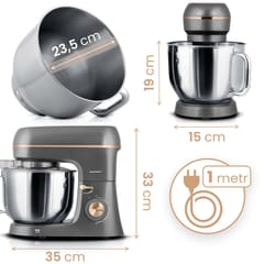 - Duża misa 6 l ze stali nierdzewnej — odporna na korozję i łatwa w czyszczeniu.
