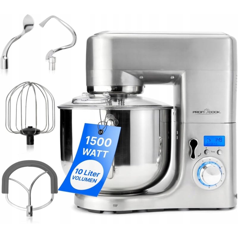 NAJWYŻSZEJ JAKOŚCIROBOT PLANETARNYRENOMOWANEJ FIRMY PROFICOOKMODEL : PC-KM 1096Solidny mikser planetarny z profesjonalnym, mocnym silnikiem 1500W idealnie wyrobi, wymiesza, ugniecie i ubije dowolne ciasto. Użyj jednej z 8 mocy, a silnik sam dopasuje konieczną ilość obrotów, by ją uzyskać.Do każdego rodzaju ciasta dołączone są wysokiej jakości mieszadła: haki do wygniatania, mieszadło do lżejszych ciast i trzepaczkę do ubijania piany.ProfiCook PC-KM 1096 to profesjonalne urządzenie, które z powodzeniem ugniecie, wymiesza i zarobi każde ciasto, w dużych ilościach. Robot wyrabia ciasta na chleb, pierogi, czy inne ciasta o gęstej konsystencji.Wszystko to dzięki wysokiej mocy, metalowemu mechanizmowi, dużej pojemności misy oraz kompletowi końcówek dedykowanych do wielu rodzaju ciast - pojemność aż 10 litrów to nawet 7-7.5 kg ciasta.Ugniatanie ciasta stanie się przyjemnością a proces przygotowania ciasta stanie się o wiele szybszy - po ustawieniu timera, robot sam wykonuje ciężką pracę wyręczając użytkownika. Ponadto dzięki możliwości rozłożenia na części, urządzenie jest bardzo łatwe w utrzymaniu czystości - misę można myć w zmywarce.Proces mieszania odbywa się pod przeźroczystą pokrywą, która zapobiega pyleniu i rozpryskiwaniu się składników, jednocześnie pozwalając kontrolować proces mieszania dzięki transparentności.Do przygotowania lżejszego ciasta należy użyć mieszadła aluminiowego w kształcie liścia, natomiast do ubijania trzepaczki wykonanej ze stali nierdzewnej. Robot kuchenny posiada wielofunkcyjne ramię obrotowe wyposażone wyświetlacz i przełączniki timera.Silnik o mocy 1500 W rozpoczyna pracę na wolnym biegu by stopniowo przechodzić na wyższe obroty. Można wybrać jedną z 8 prędkości pracy, by dopasować tempo do potrzeb oraz rodzaju ciasta.Najważniejsze cechy:Kolor: srebrnyMoc aż 1500 WMocny, profesjonalny silnik o długiej żywotnościDuża misa ze stali nierdzewnej o pojemności 10 litrówMisa z 2 uchwytami, do przygotowywania maksymalnie 7-7.5 kg ciastaOdlewana, aluminiowa obudowa z wytrzymałymi metalowymi elementamiMocny i wytrzymały metalowy mechanizmTimerWyświetlacz LCDStała moc dzięki elektronicznej regulacji obrotów zależnej od obciążenia8 ustawień prędkości (0/1/2/3/4/5/6 + pulsowanie)Miękki rozruch umożliwiający łagodne zwiększanie obrotówUchylne, wielofunkcyjne ramię z mechanizmem odblokowywania (35°)Transparentna pokrywa z zabezpieczeniem przed rozpryskiwaniem i z otworem wlewowymWyłącznik bezpieczeństwa uruchamiany w przypadku podniesienia ramieniaNiezwykle łatwy w obsłudze i utrzymaniu czystościStabilna i bezpieczna pozycja dzięki nóżkom na przyssawkachPodwójne mieszadła do ciężkiego ciasta drożdżowego, chlebowego i makaronowegoOdlewane mieszadło aluminiowe do lekkiego ciasta na ciastka, kruszonki i biszkoptyTrzepaczka ze stali nierdzewnej z osłoną do ubijania jajek i śmietanyOznaczenia CE - spełnia wszystkie restrykcyjne normy UEZasilanie: 220-240 V, 50/60 Hz 1PODWÓJNE HAKI do zagniatania i wyrabiania ciężkich składników takich jak ciasto na chleb, bułki, wyrabianie ciasta na makaron, pierogowe, drożdżowe, faworkowe, pierniki itp. oraz wstępnego mieszania składników. 2MIESZADŁO do zagniatania i wyrabiania ciasta lekkiego np. na biszkopt, ciastka, kruszonki. 3TRZEPACZKA do ubijania lekkich składników takich jak piany z białek, jajek, śmietany, kremów gotowych, budyniu, majonezu, musów, sufletów, panierki itp.WielozadaniowyProfesjonalne urządzenie, które z powodzeniem ugniecie, wymiesza i zarobi każde ciasto, w dużych ilościachPojemnyDzięki misy o pojemności aż 10 litrów można przygotować nawet 7-7.5 kg ciastaWydajnySilnik o mocy 1500 W rozpoczyna pracę na wolnym biegu by stopniowo przechodzić na wyższe obroty. Można wybrać jedną z 8 prędkości pracy, by dopasować tempo do potrzeb oraz rodzaju ciastaŁatwy w utrzymaniu czystości Produkt został odznaczony certyfikatem FOCUS - TEST DEUTSCHLANDS BESTECertyfikat TEST DEUTSCHLANDS BESTE został przyznany na podstawie badań przeprowadzonych przez „Germanys best household electronics”. W ramach testu porównane zostały produkty z ponad 20 000 marek z 274 segmentów rynkowych.Celem wyróżnienia „Focus” jest wskazywanie produktów cieszących się największym uznaniem konsumentów. Certyfikat przyznany jest na podstawie badań niemieckiego rynku i potwierdza wysoką jakość produktów a także świadczy o dużym zaufaniu konsumentów i renomie marki.Wymiary: (ok. szer. x wys. x gł.) i wagaUrządzenie: 437 x 420 x 167 mm; 11.4 kgOpakowanie: 475 x 515 x 340 mm; 12.69 kgslimtex