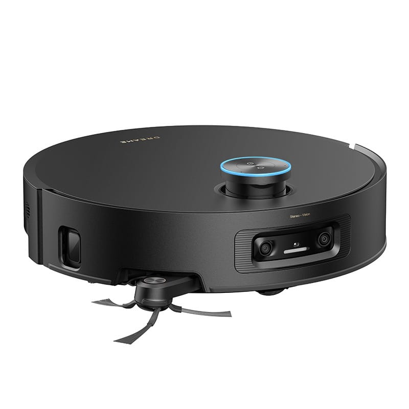 System OmniSight™ AI Navigation łączy dwie kamery AI (160°; 1600×1200), boczny czujnik światła strukturalnego 3D StereoEdge™ oraz podświetlenie LED. System rozpoznaje ponad 240 typów obiektów z dokładnością do 1 mm – od kabli, ciemnych przedmiotów i zabawek, po płaskie kartki czy przezroczyste torby – i planuje bezkolizyjną trasę. Czujnik StereoEdge™ na prawej krawędzi pozwala wykrywać przeszkody z odległości nawet 6 m, eliminując martwe strefy przy ścianach i przewodach. Co ważne, gdy robot w trybie VersaLift™ obniża wysokość i chowa czujnik DToF, przełącza się na OmniSight™, który tworzy dokładny obraz otoczenia w 3D i umożliwia bezpieczne sprzątanie także pod niskimi meblami.