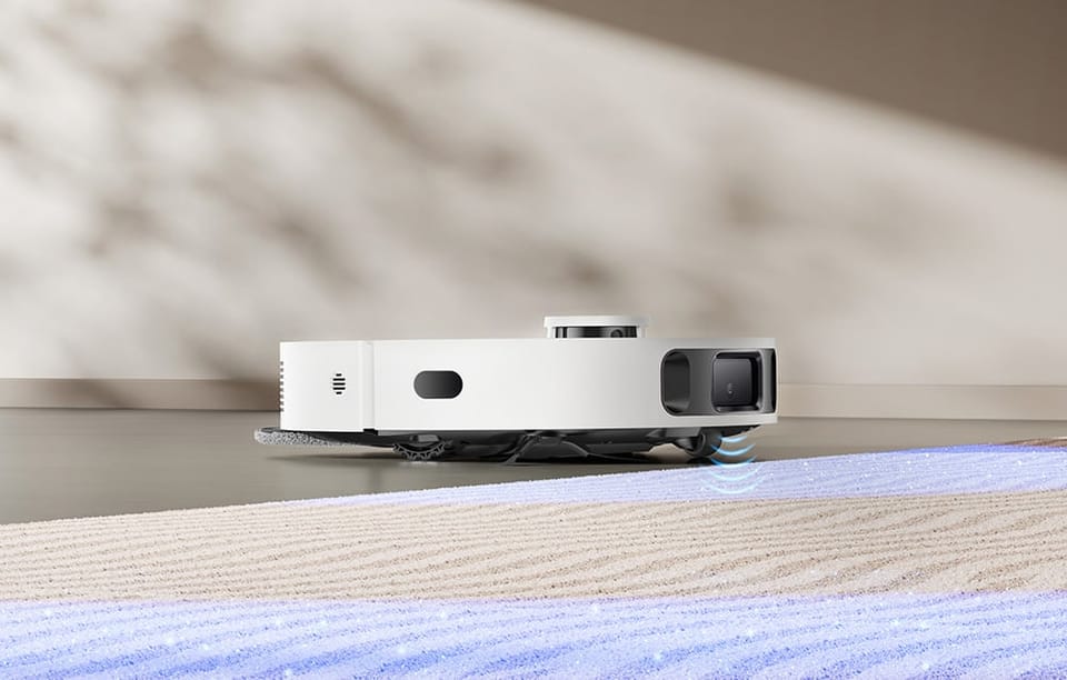 Dreame D20 Ultra inteligentnie wykrywa dywany i automatycznie zwiększa na nich moc ssania. Dzięki temu skutecznie odkurza ukryte w ich włóknach okruchy, kurz, a nawet sierść. Nie musisz też obawiać się zamoczenia wykładzin podczas sprzątania – robot może unosić pady mopujące na wysokość 10,5 mm.