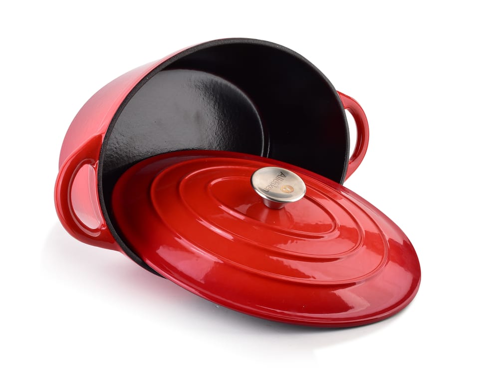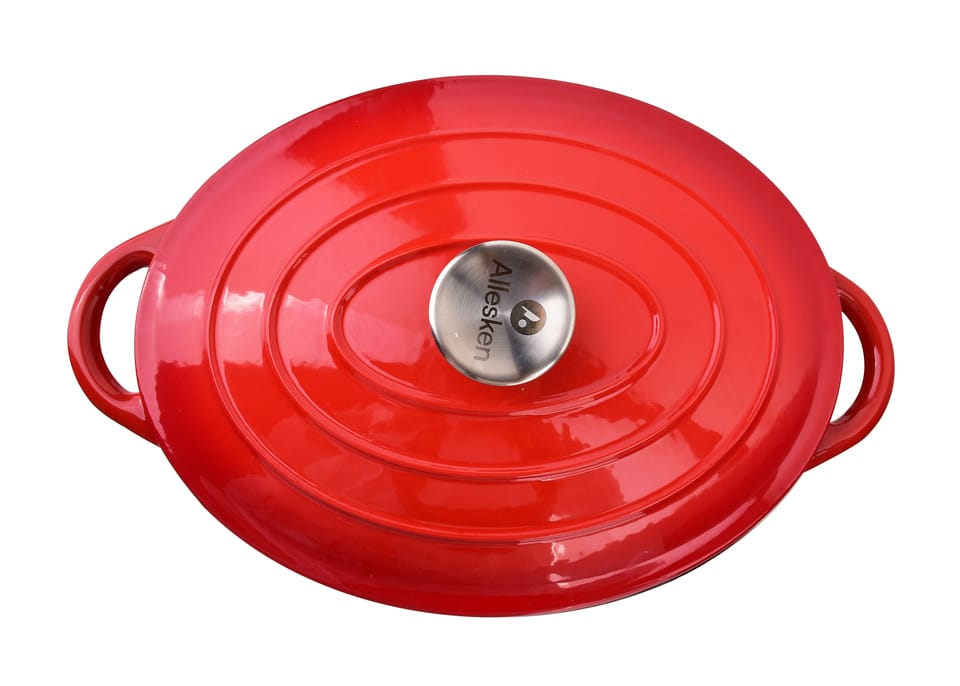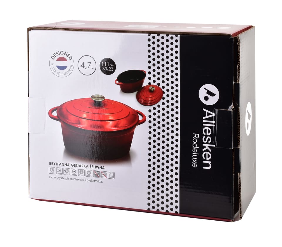 Gęsiarka żeliwna w kolorze czerwonym z serii RODELUXE to wysokiej jakości naczynie kuchenne, które jest idealne do przygotowywania różnorodnych potraw, w szczególności duszonych mięs, zapiekanek oraz pieczeni. Oto kilka cech charakterystycznych takiej gęsiarki: Materiał: Wykonana z solidnego żeliwa, które zapewnia równomierne rozprowadzanie ciepła oraz długotrwałe utrzymywanie temperatury. Kolor: Elegancki czerwony kolor, który dodaje stylu każdej kuchni. Pokrywa: Żeliwna pokrywa zapewniająca szczelność oraz optymalne warunki do duszenia potraw. Rączki: Ergonomiczne uchwyty ułatwiające przenoszenie naczynia, nawet gdy jest gorące. Seria RODELUXE: Charakteryzuje się wyjątkowym designem oraz najwyższą jakością wykonania.Takie naczynie jest nie tylko funkcjonalne, ale również stanowi piękny element wyposażenia kuchni. Idealne dla miłośników gotowania, którzy cenią sobie trwałość i estetykę swoich narzędzi kuchennych.wymiary: 30x38(uchwyty)xh17cm z pokrywąwymiary naczynia:waga: 5,55kgzapakowana jednostkowo w color box 33x27xh13cm