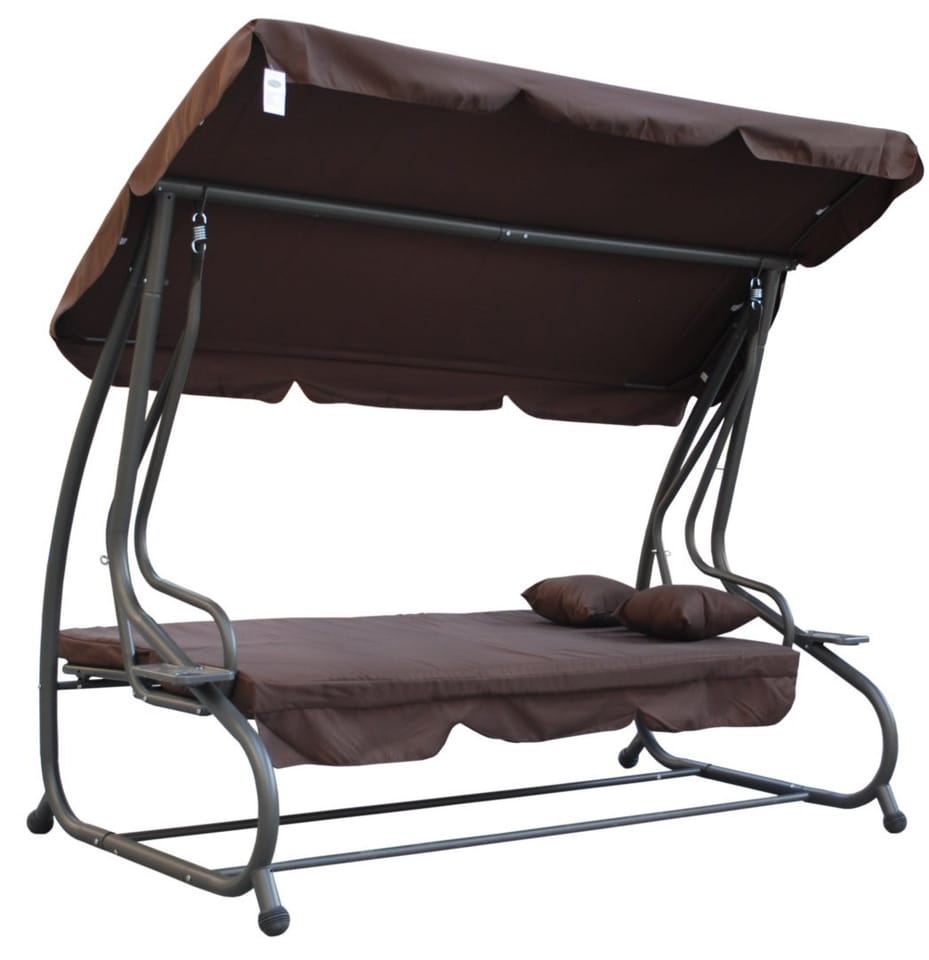 | Opis | Huśtawka ogrodowa z rozkładanym siedziskiem i regulacją daszka, ciemny brąz [8011 NEW CB] |