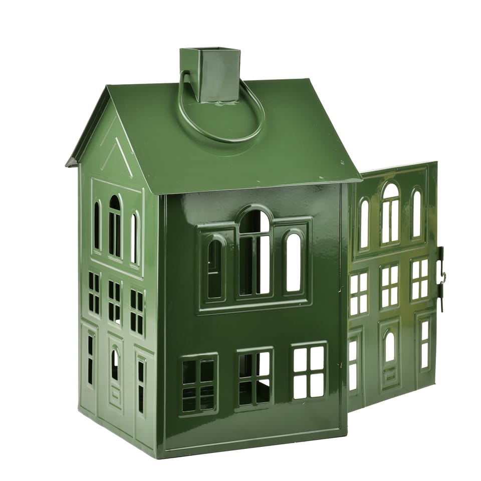ROGER Domek lampion 20,3 x 20 x h33,8 cm. Stylowy lampion w formie domku wykonany z metalu, który łączy w sobie prostotę i elegancję. Dzięki swojej konstrukcji doskonale sprawdzi się jako nastrojowe źródło światła, idealny zarówno do wnętrz, jak i na taras czy balkon. Można w nim umieścić świecę LED lub tradycyjną woskową,co pozwala stworzyć przytulną atmosferę i wyjątkowy klimat. Solidne wykonanie gwarantuje trwałość, a dekoracyjna forma sprawia, że lampion staje się efektownym elementem aranżacji przestrzeni.