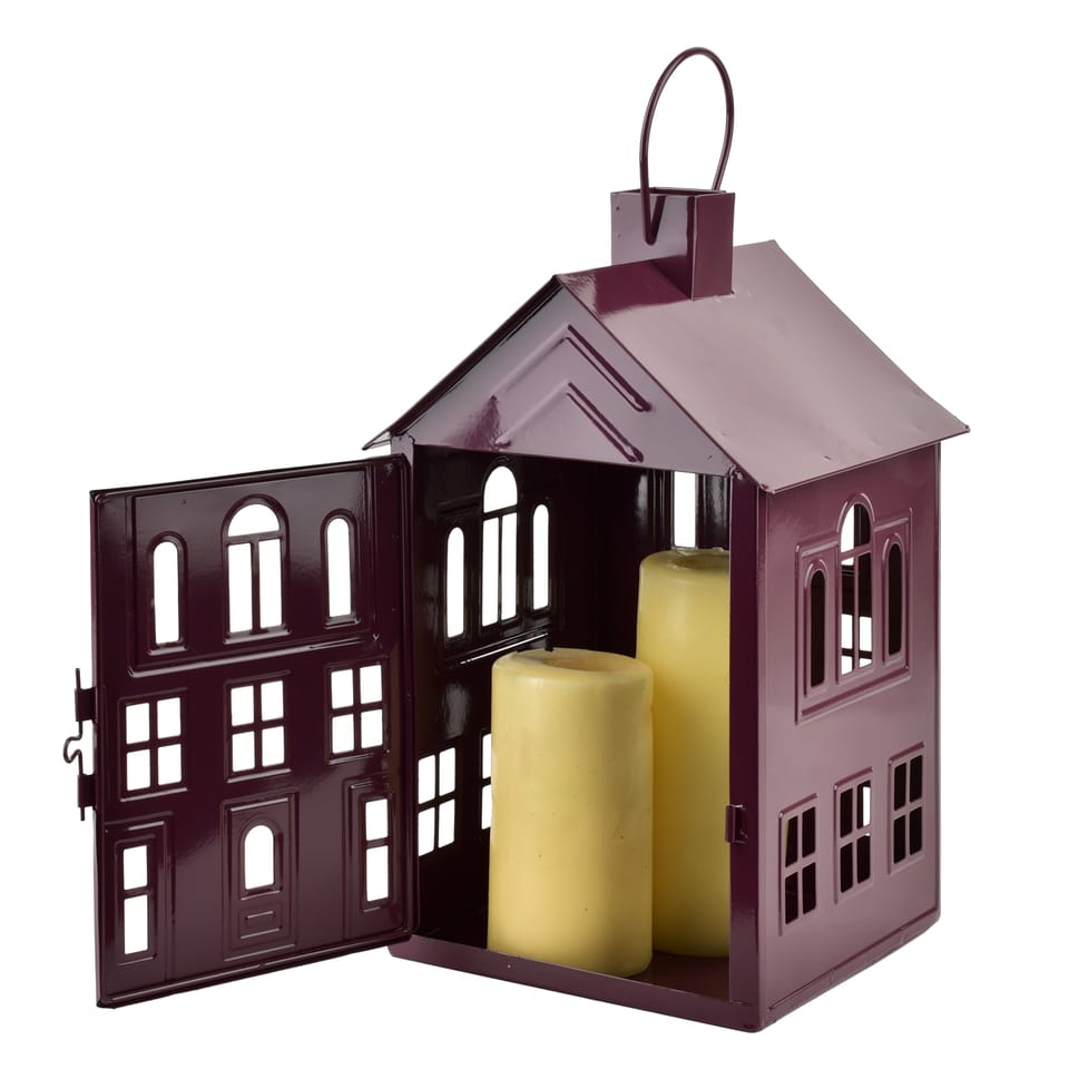 ROGER Domek lampion 20,3 x 20 x h33,8 cm. Stylowy lampion w formie domku wykonany z metalu, który łączy w sobie prostotę i elegancję. Dzięki swojej konstrukcji doskonale sprawdzi się jako nastrojowe źródło światła, idealny zarówno do wnętrz, jak i na taras czy balkon. Można w nim umieścić świecę LED lub tradycyjną woskową, co pozwala stworzyć przytulną atmosferę i wyjątkowy klimat. Solidne wykonanie gwarantuje trwałość, a dekoracyjna forma sprawia, że lampion staje się efektownym elementem aranżacji przestrzeni.