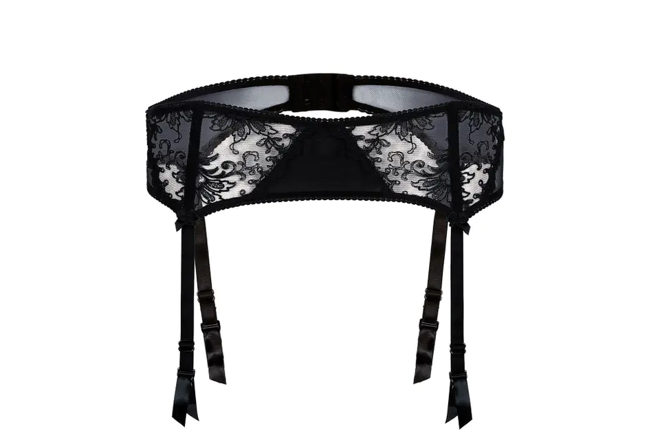Uwodzicielski pas do pończoch wykonany z włoskiego haftu Ricamificio di Fagnano. Pas posiada zapięcie z tyłu z możliwością jego regulacji, dzięki czemu każda kobieta będzie w stanie lepiej dopasować go do własnej figury.