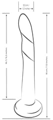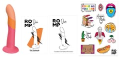 Model ROMP Dizi to elegancki, dwukolorowy produkt wykonany z wysokogatunkowego silikonu, ktory wyrożnia się subtelną, falistą powierzchnią oraz doskonałym wyprofilowaniem. System mocnej przyssawki umożliwia pewne zamocowanie na każdej gładkiej powierzchni, zapewniając pełną swobodę użytkowania bez potrzeby użycia rąk. Konstrukcja kompatybilna z uprzężami typu strap-on pozwala na zastosowanie w rożnych konfiguracjach.