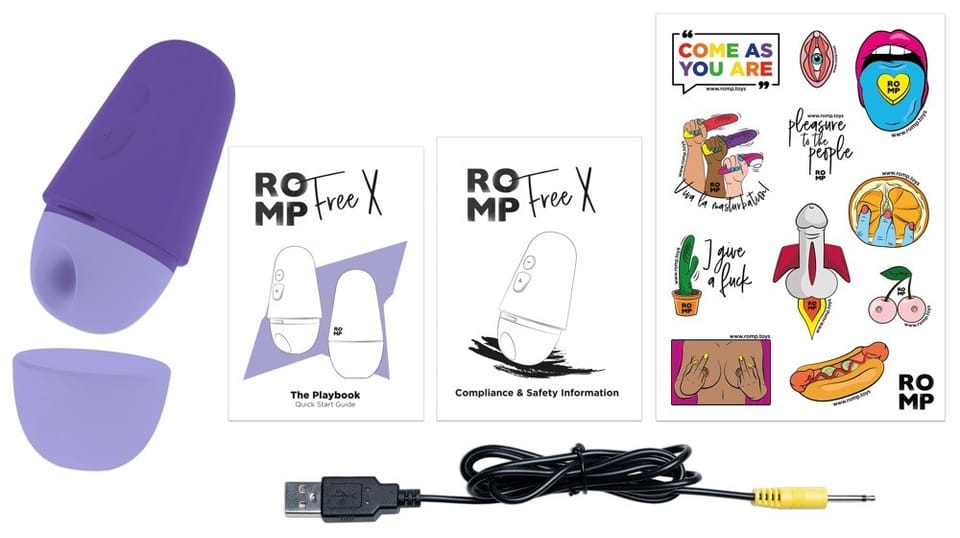 ROMP Free X został wykonany z wysokiej jakości materiałow – miękkiego silikonu, wytrzymałego ABS oraz PU, co przekłada się na trwałość, bezpieczeństwo oraz łatwość utrzymania w czystości. Ochronna nasadka zabezpiecza powierzchnię urządzenia podczas transportu. W zestawie znajduje się kabel USB umożliwiający szybkie i wygodne ładowanie.