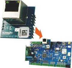 Expander wyposażony jest w port Ethernet 10/100 BaseT (RJ-45) i montowany jest bezpośrednia na płycie centrali.