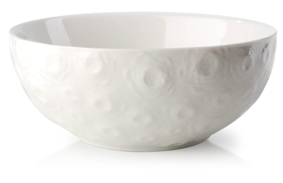 Miska porcelanowa Rose marki Affek Desing by Mondex. Ozdobiona wytłaczanymi, wypukłymi różyczkami. Można myć w zmywarce oraz używać w kuchence mikrofalowej.Wymiary:Średnica :16cmPojemność :750mlWysokość: 6.5cmZapakowana jednostkowo w kolorowy kartonik: