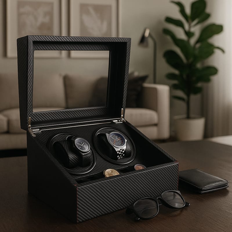 Rotomat na zegarek automatyczny, szkatułka gablotka Karbon czarny 31x24x18cm PD105