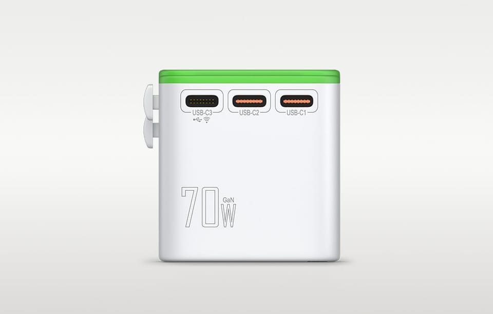 Adapter Roamplug zapewnia maksymalną moc wyjściową 70 W, a dzięki czterem dostępnym portom (3x USB-C, 1x USB-A) pozwala na zasilanie kilku urządzeń jednocześnie. Obsługuje też wiele standardów szybkiego ładowania, takich jak PD3.0, QC4.0, FCP, AFC czy PPS. Możesz więc w mgnieniu oka przygotować swój tablet, telefon lub laptopa do dalszej pracy!