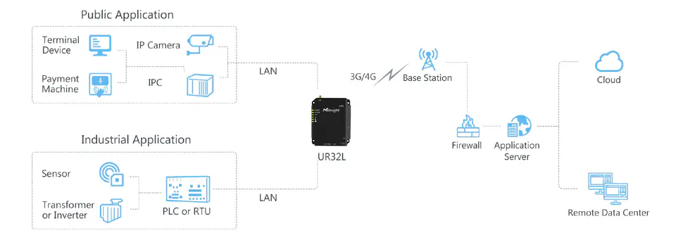 Router UR32L to ekonomiczny przemysłowy router komórkowy z wbudowanymi inteligentnymi funkcjami przeznaczonymi do różnorodnych aplikacji M2M/IoTapplication. Obsługa globalnych operatorów WCDMA i 4G LTE sprawia, że ta bezpośrednia łączność jest bardzo pomocna dla operatorów w maksymalizacji czasu działania. Posiada 2 szybkie porty Ethernet i obsługuje zgodność Wi-Fi ze standardami 802.11b/g/n. Wszystkie te możliwości zapewniają użytkownikom nieprzerwany dostęp do Internetu. Łatwe wdrażanie i kompleksowe zdalne zarządzanie urządzeniami sprawiają, że UR32L jest wszechstronny w większości aplikacji IoT/M2.