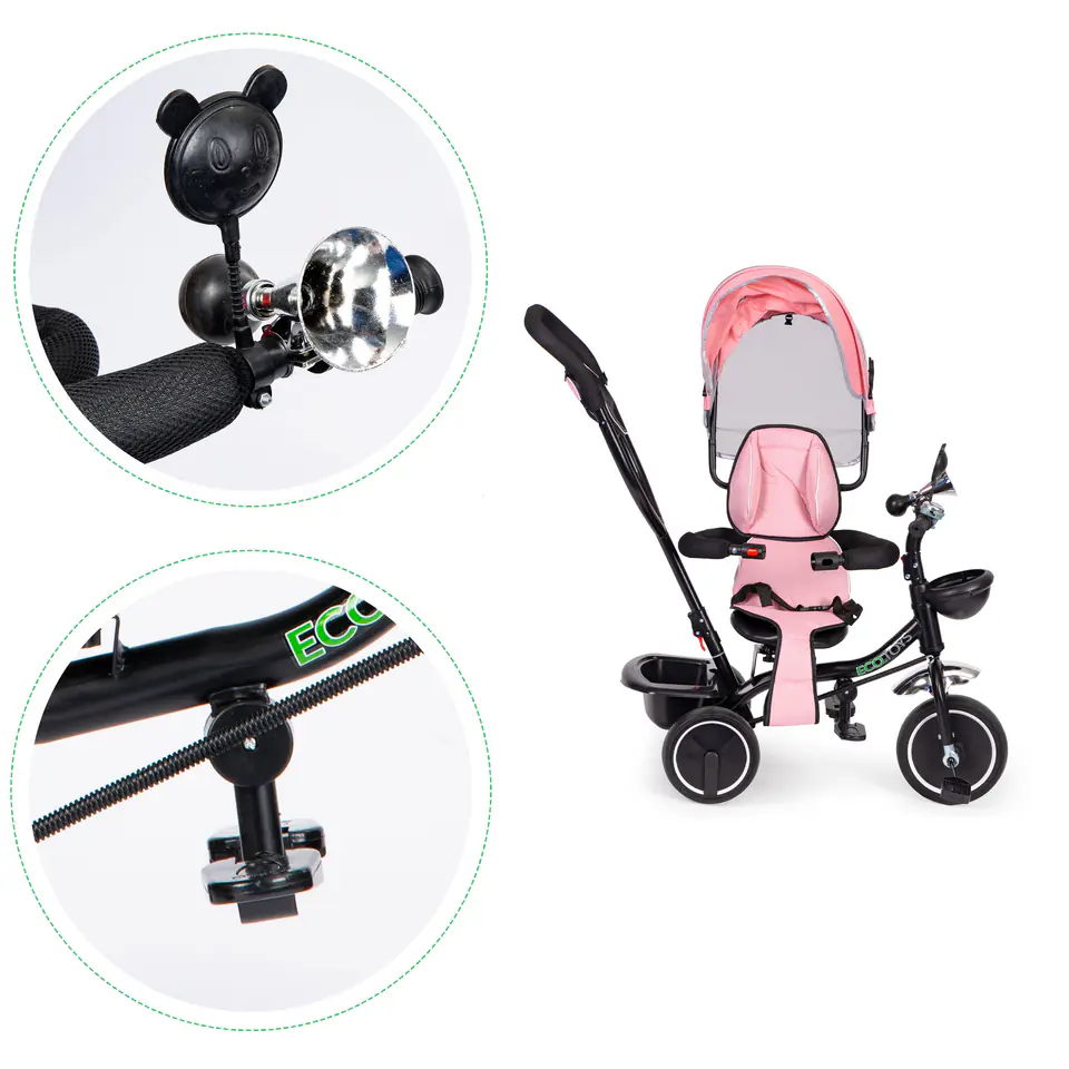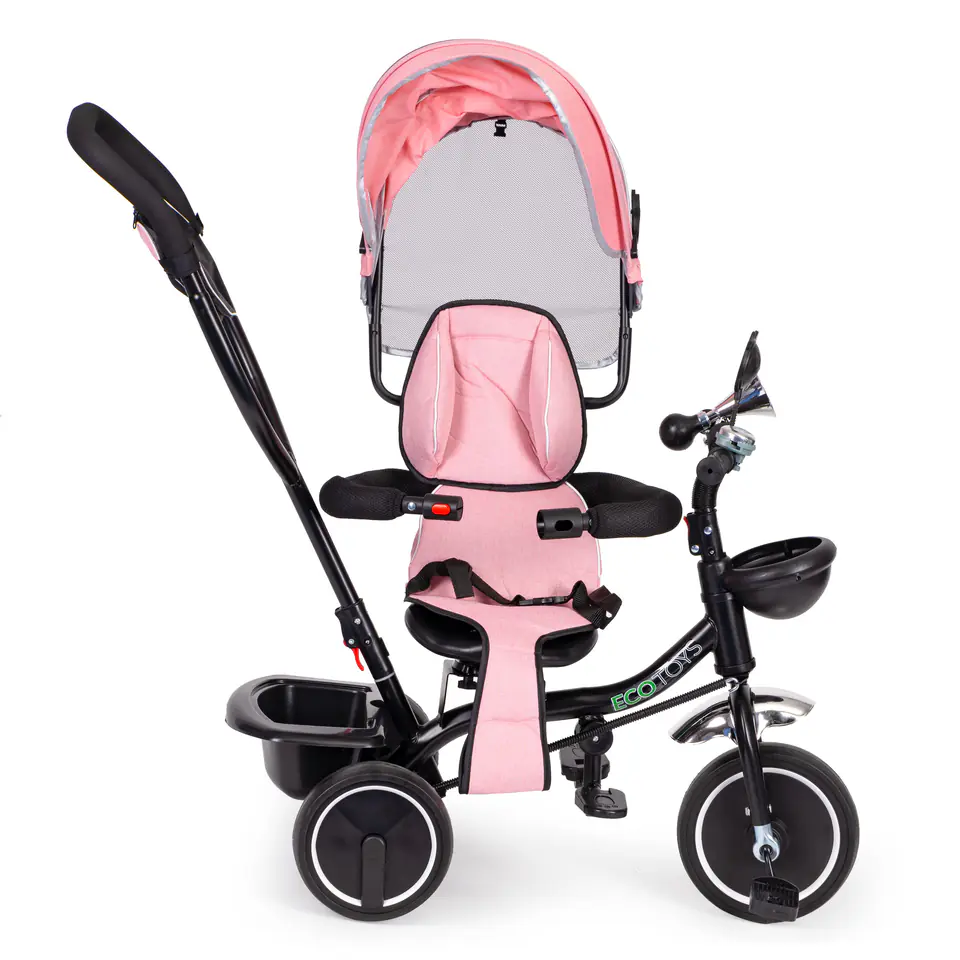 Rowerek ECOTOYS łączy w sobie wiele praktycznych rozwiązań, które zapewnią twojemu dziecku wygodną i bezpieczną zabawę. Rowerek posiada miękkie komfortowe oparcie, dzięki któremu maluch będzie siedział wygodnie a pasy i barierki zabezpieczą go przed wypadnięciem z siedziska. Składany daszek ochroni przed deszczem i słońcem. Specjalnie wyprofilowana rama oraz obrotowe siedzisko ułatwi wsiadanie najmłodszym dzieciom.