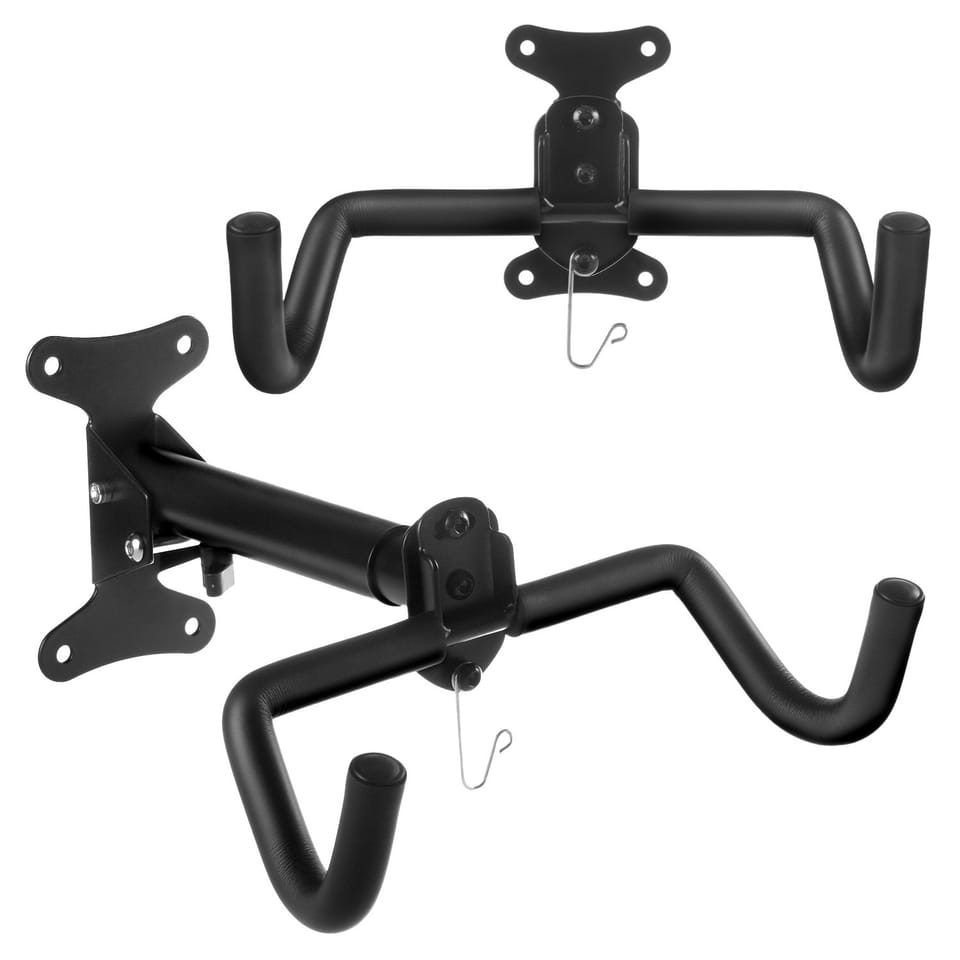 Uchwyt mocowany jest do ściany za pomocą dołączonych czterech kołków, które bez problemu utrzymają rower o wadze do 30 kg. Po ściągnięciu roweru, wieszak można złożyć, aby nie zajmował miejsca.