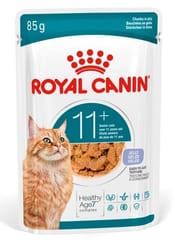 Royal Canin Ageing +11 karma mokra dla kotów dojrzałychMokra karma ROYAL CANIN AGEING 11+ kawałki w galaretce, opracowana została specjalnie dla kotów w wieku powyżej 11 lat. Tekstura karmy ROYAL CANIN AGEING 11+ kawałki w galaretce została opracowana i przetestowana przez koty starsze tak, aby ułatwić im jedzenie i sprawić, aby każdy posiłek był przyjemnością. Wyjątkowa receptura, zawierająca kompleks HealthyAge7, dostarcza precyzyjnie dobrane składniki pokarmowe, które pomagają wspierać 7 kluczowych obszarów związanych ze zdrowiem I witalnością kotów w wieku powyżej 11 lat: