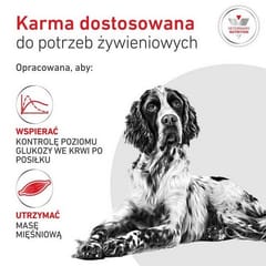 Royal Canin Veterinary Diet GlycobalanceROYAL CANIN Glycobalance to pełnoporcjowa, dietetyczna karma dla psów dorosłych. Opracowana została w celu regulacji zaopatrzenia w glukozę (Diabetes mellitus).Unikalna receptura karmy ROYAL CANIN Glycobalance pomaga kontrolować poziom glukozy we krwi po posiłku u psów z cukrzycą. Wysoki poziom białka pomaga chronić masę mięśniową. Obniżona zawartość łatwostrawnych węglowodanów i mniej niż 1% skrobi dodanej. Receptura o umiarkowanym poziomie tłuszczu pomaga zachować optymalną masę ciała.ROYAL CANIN Glycobalance to karma o ograniczonym poziomie łatwostrawnych węglowodanów, wysokiej zawartości białka oraz odpowiedniej koncentracji kluczowych składników odżywczych dla zachowania witalności. Przed użyciem należy skonsultować się z lekarzem weterynarii. Wskazania: