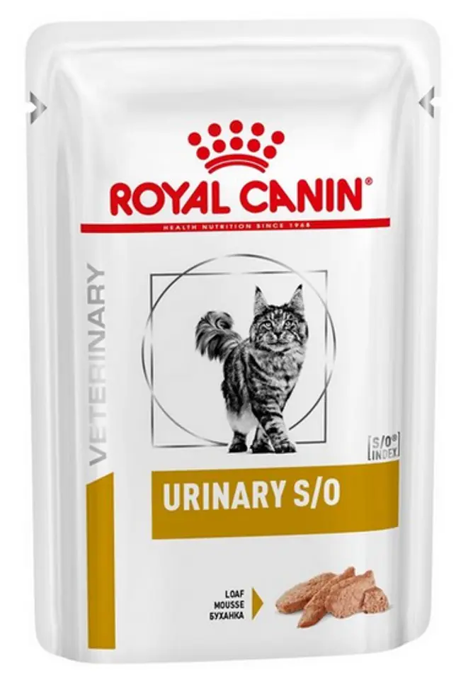 Urinary S/O in loafPełnoporcjowa dietetyczna karma dla kotów w formie pasztetu, stworzona aby rozpuszczać kamienie struwitowe i zapobiegać ich ponownemu powstawaniu, dzięki właściwościom zakwaszającym mocz. ZALECENIA: Przed użyciem należy skonsultować się z lekarzem weterynarii. Dietę URINARY S/O należy stosować przez 5-12 tygodni w celu rozpuszczenia kamieni struwitowych oraz do 6 miesięcy w celu zapobiegania ich ponownemu tworzeniu. Należy zapewnić stały dostęp do świeżej wody.Wskazania: