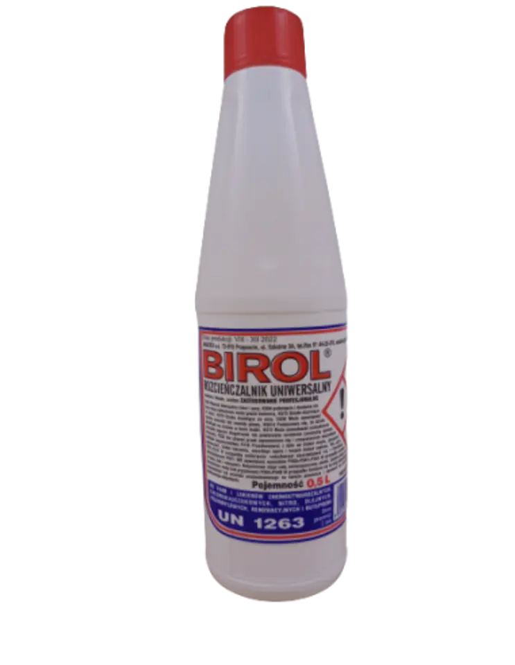 Rozcieńczalnik uniwersalny BIROL do farb i lakierów chemoutwardzalnych, chlorokauczukowych, nitro, olejnych, poliwinylowych, renowacyjnych i butaprenu. Posiada różnorodne zastosowanie, zarówno w gospodarstwach domowych jak i w przemyśle.