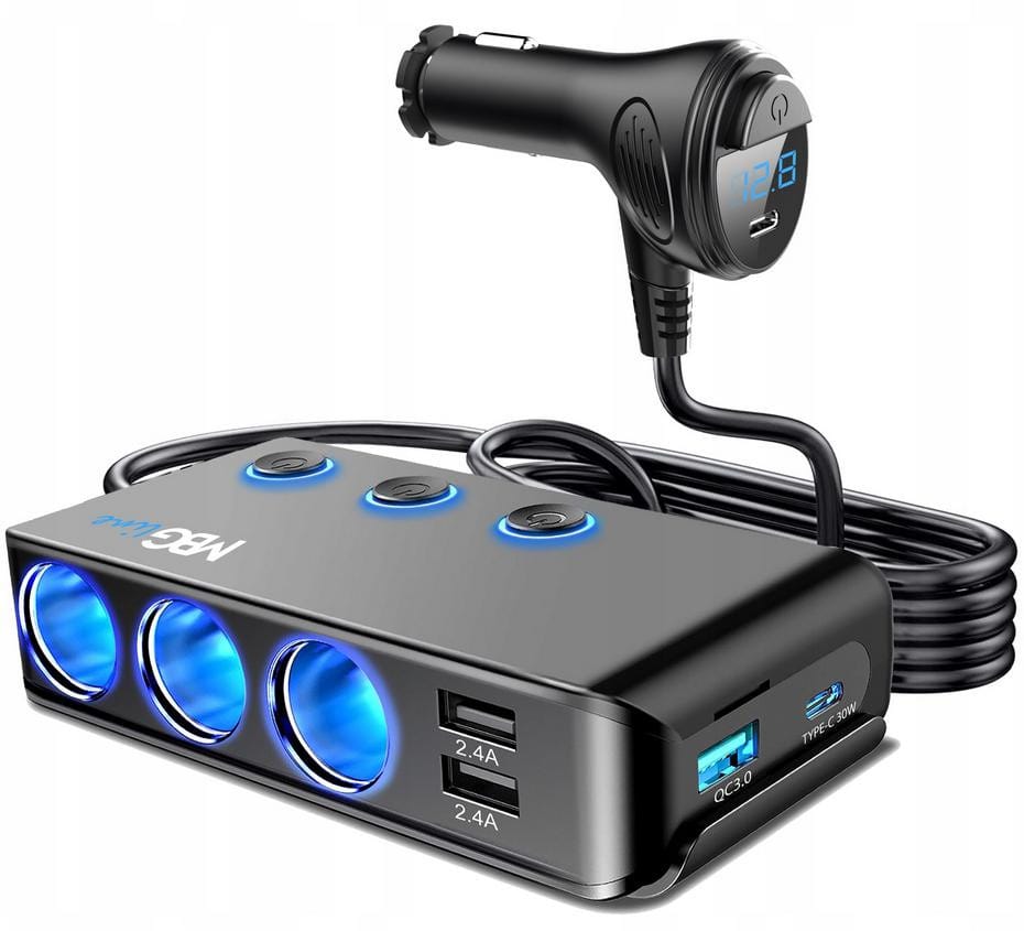 Model: HC67CRozdzielacz gniazdka zapalniczki 3 x USB (1 x QC3.0) + 3 x gniazdo zapalniczki + 2 x USB TYP C PD 30W - MAX 120W + woltomierz - najważniejsze cechy: